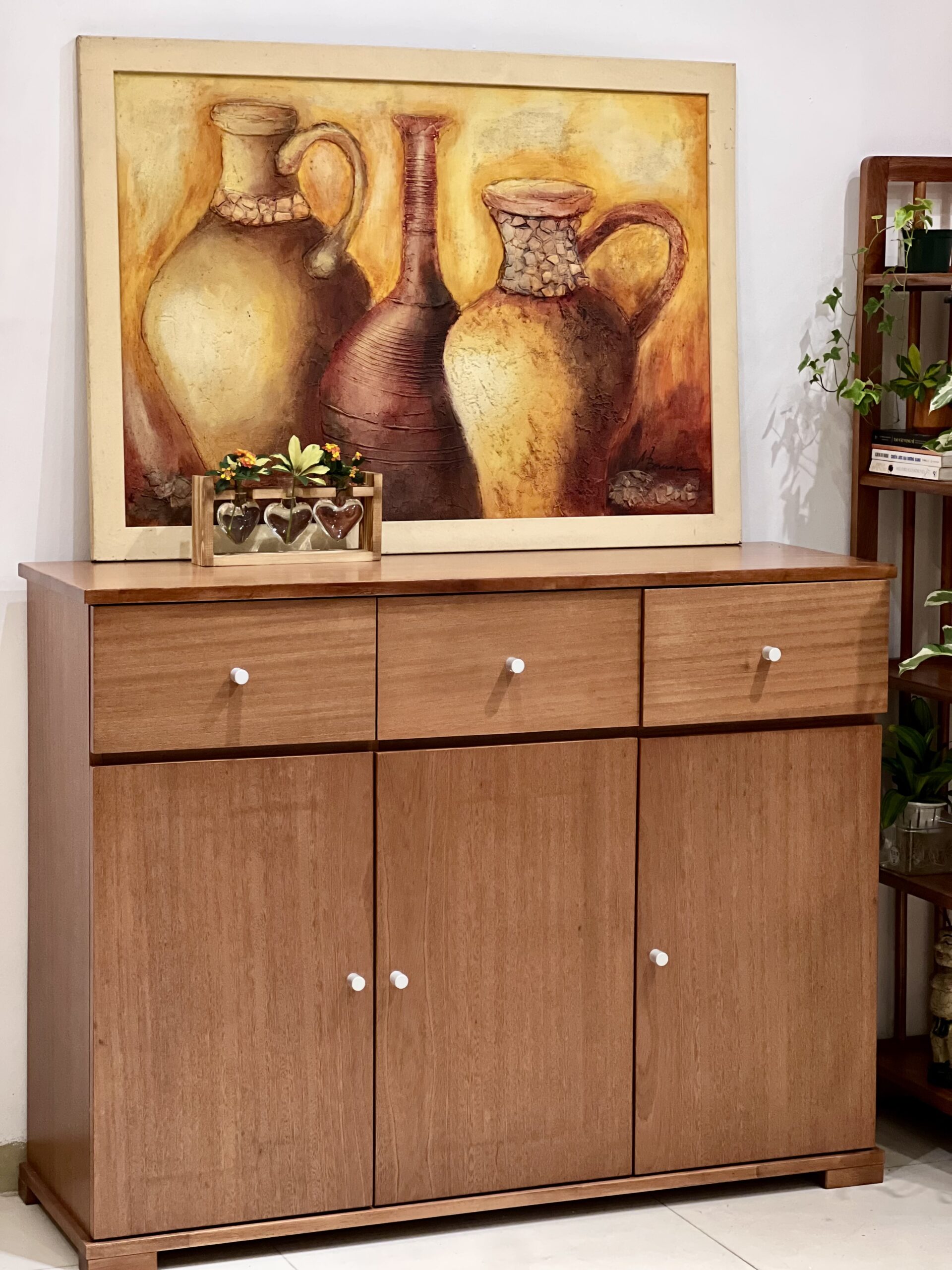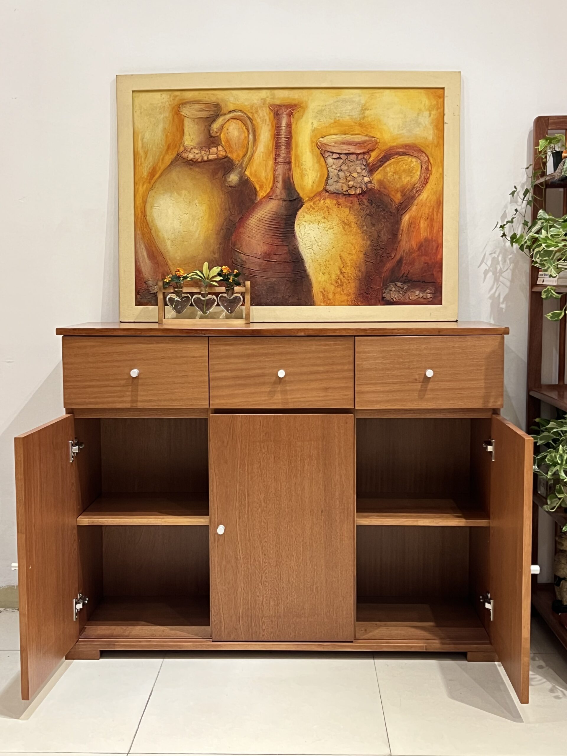 4. Dùng làm kệ trang trí – Mặt trên của tủ có thể tận dụng để đặt đồ trang trí, khung ảnh, cây cảnh mini hoặc thiết bị điện tử như loa, đồng hồ.