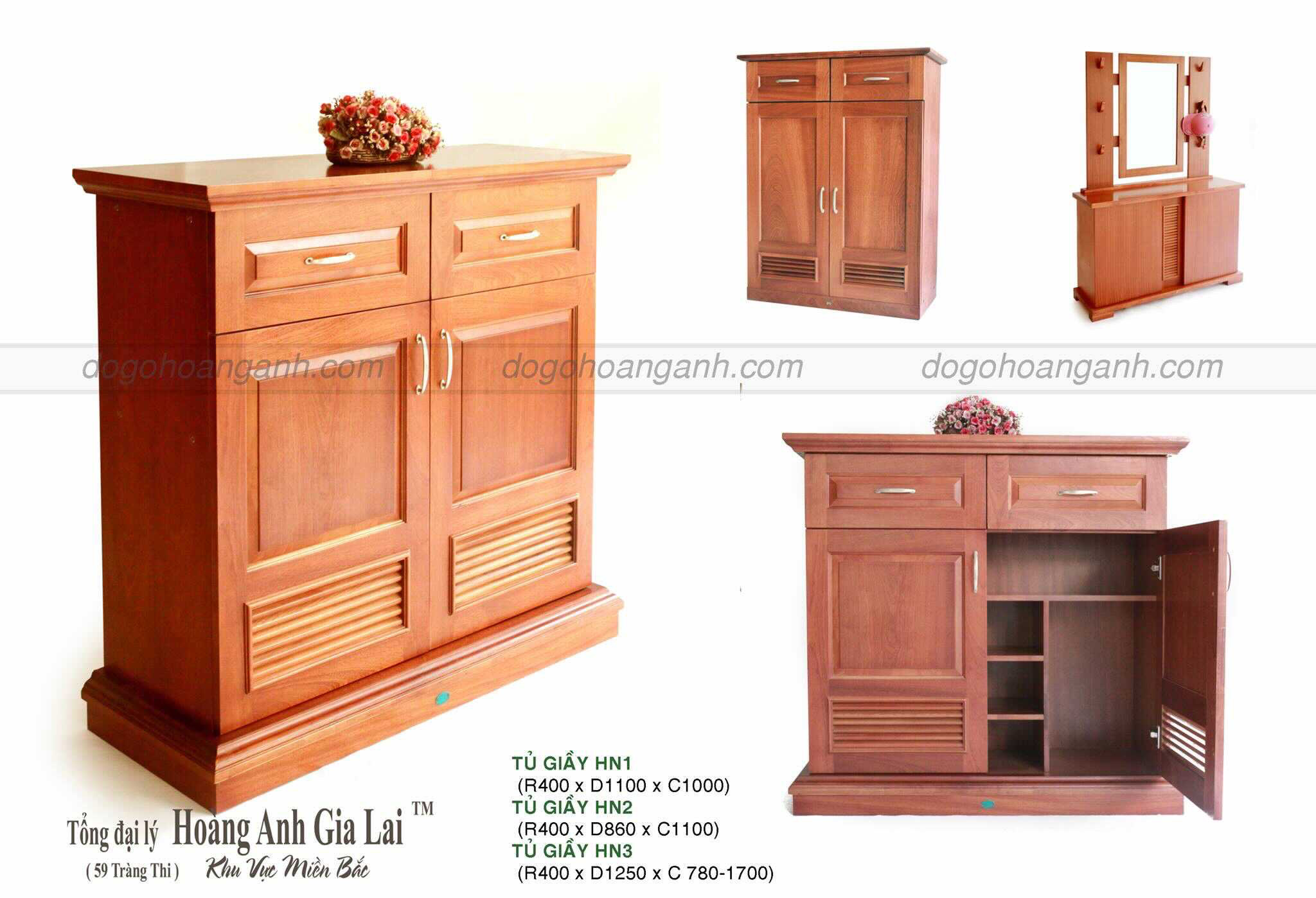Nếu diện tích nơi để tủ giầy nhỏ hơn một chút, có thể cân nhắc tủ giầy HN5, là là mẫu tủ giầy nhỏ nhất của đồ gỗ Hoàng Anh Gia Lai. Tủ giầy HN5 có chiều ngang nhỏ hơn khoảng 25cm so với tủ giầy HN2, nhưng vẫn đảm bảo chiều sâu và độ cao, đủ chỗ cho giầy dép của gia đình.